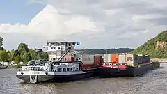 A blue sign or blue board is used by inland waterways vessels within the Trans-European Inland Waterway network when performing a special manoeuvre or passing on the starboard side. On navigable waterways vessels normally pass each other on the port-side, so the display of the blue sign and flashing white light signal intention to pass each other on the starboard-side.[1] This process is known as blue boarding or historically blue flagging.[2][3][4][5]