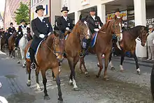 The Blutritt in the Upper Swabia Weingarten is regarded as the biggest equestrian procession in Europe.[1] It takes place on the Friday after Ascension Day,[2] also known as "Blood Friday" ("Blutfreitag“). In 1529 the Blutritt was first mentioned in writing, but even then it was labeled as an old custom.