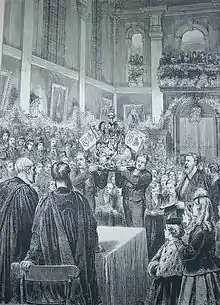 The "Boar's Head Carol" is a macaronic 15th century[1][2] English Christmas carol that describes the ancient tradition of sacrificing a boar and presenting its head at a Yuletide feast. Of the several extant versions of the carol, the one most usually performed today is based on a version published in 1521 in Wynkyn de Worde's Christmasse Carolles.[1]