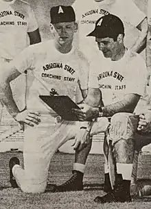 Following Carey's severe knee injury, he spent 1955 in rehabilitation and was hired as end coach on the staff of eventual College Football Hall of Fame coach Dan Devine at Arizona State. The Sun Devils finished 8–2–1 for the season. Devine went on to serve in head coaching positions at the University of Missouri, the Green Bay Packers and at the University of Notre Dame, where he won a national championship in 1977. Following the '55 Arizona State campaign, Carey rejoined the Rams in LA for the 1956 season.