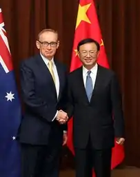 Carr returned to China with Prime Minister Gillard in April 2013 for the annual Boao Forum for Asia, with a focus on strengthening bilateral relations.[72] The Chinese Government agreed to the direct convertibility of Australian currency into yuan - only the third such agreement in China's history.[73] Gillard and Carr also secured agreements for an annual leadership dialogue with their Chinese counterparts. China's President Xi Jinping was reported as intending to lift Australia-China relations "to a new level" following Forum discussions.[74]