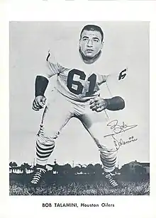 Robert Guy "Bob" Talamini (born January 8, 1939 in Louisville, Kentucky), was a 6'1", 250 lb lineman, who earned third-team All-SEC honors at the University of Kentucky and was drafted by the Houston Oilers of the American Football League.[1] His professional career began with the AFL's first training camp in 1960, and was capped the day the New York Jets stunned the NFL's Baltimore Colts in Super Bowl III on January 12, 1969.