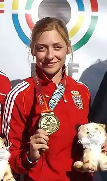 Bobana Veličković (Serbian Cyrillic: Бобана Величковић; 25 January 1990 – 21 June 2020) was a Serbian sport shooter.[1] At the 2012 Summer Olympics, she competed in the Women's 10 metre air pistol. At the 2016 Summer Olympics, she competed in the Women's 10 metre air pistol and the Women's 25 metre pistol, finishing in 7th place in 10m.[2]