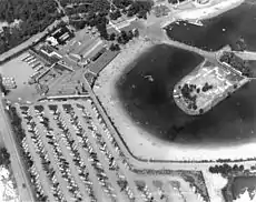 Bobbejaanland is a theme park in Lichtaart, Belgium.[2][3] The park was founded by Bobbejaan Schoepen, a Flemish singer, guitarist, and entertainer who enjoyed international popularity in the fifties and early sixties. In 1959 he bought a 30 hectare marsh, had it drained and built a 1000 capacity venue that opened in December 1961 as Bobbejaanland. This developed into an amusement park and remained in his possession until he sold it in 2004.