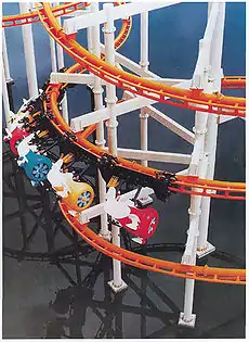 In 1979 Bobbejaanland opened the Looping Star roller coaster (Schwarzkopf GmbH). Although the ride had a security bar placed over the hip, it was more the centrifugal force which held the passengers in the vehicle when it looped the loop.[4][5] The coaster was dismantled in 2003.