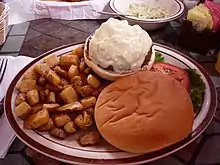 During its time under the Eckre family's management, Bobcat Bite was well-known among the citizens, visitors, and tourists of Santa Fe, New Mexico, and has been named in several articles, including those contained within the Albuquerque Journal, the Chicago Tribune, and The New York Times.[2][3][4] Bobcat Bite also appeared in the 2004 documentary Hamburger America,[5] and was mentioned in the Food Network's program, "Top American Restaurants: Bon Appétit picks the best", hosted by Alton Brown, in 2007.[6] Bobcat Bite was featured in the 2012 episode "New Mexico" on Bizarre Foods America.[7] Host Andrew Zimmern ranks it in his top 3 hamburgers.
