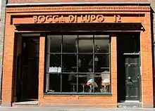 Bocca di Lupo means "the mouth of the wolf"; in Italian the phrase is used to refer to either a trou de loup (a defensive obstacle), a type of pastry, or a basement ventilation opening.[6] The restaurant owners use it to refer to the related Italian saying in bocca al lupo, a traditional Italian equivalent of the English saying "break a leg";[5] Bocca di Lupo's website is also headed by the English motto "For when you're hungry like the wolf".[7]