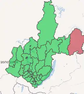 Bodaybinsky District (Russian: Бодайбинский райо́н) is an administrative district, one of the thirty-three in Irkutsk Oblast, Russia.[1] Municipally, it is incorporated as Bodaybinsky Municipal District.[8] The area of the district is 92,000 square kilometers (36,000 sq mi).[3] Its administrative center is the town of Bodaybo.[2] Population: 7,887 (2010 Census);[4] 10,817 (2002 Census);[10] 16,166 (1989 Census).[11]