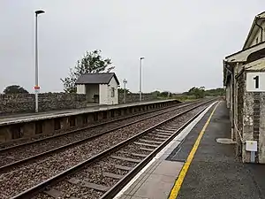 The station, which was originally to be called Trefdraeth, was opened in October 1849[2] and had a small signal box, a small goods yard and a water tower. The goods yard closed in December 1964 but the stationmaster's house remains (now in private use).[3] There are stone-built shelters on both platforms.