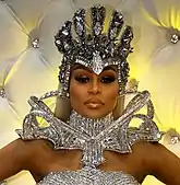 The music video for "Body" was directed by Colin Tilley and features choreography from both Megan Thee Stallion and choreographer JaQuel Knight.[27] It was released alongside both the song and album on November 20, 2020.[2] Megan Thee Stallion engaged in a livestream premiere for the song's music video as part of the YouTube Originals' Released series.[15] At the premiere, she told fans, "You're going to see all body shapes, a lot of strong women doing the damn thing. Just being confident and owning their bodies and their sexuality".[7] Celebrities who make cameo appearances in the music video for "Body" include Taraji P. Henson, Blac Chyna, Jordyn Woods, Maliibu Miitch, Asian Da Brat, and Tabria Majors.[11][28] Throughout the video, the women "confidently groove on a futuristic set and on a spotlit stage".[1] Various fashion publications praised the outfits worn in the video.[11][15][29] Megan Thee Stallion initially wears a black, mesh body suit which emphasizes her curves, as well as "an oversized coat with a bedazzled bodice with nothing underneath".[15][29]