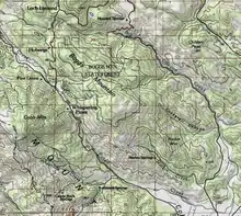 Boogs Mountain is located in Lake County, California. It is 3,740 feet (1,140 m) high, in the heart of the Mayacamas Mountains, facing the 4,728 feet (1,441 m) Cobb Mountain across Cobb Valley.[7] The mountains are in the California Coast Ranges.[8] Boggs Mountain is one of the mountains in the Cobb Mountain Area, many of which have volcanic origin. Others are Cobb Mountain, the most dominant, Mount Hannah and Seigler Mountain. There are isolated small valleys and basins between the mountain peaks.[9]