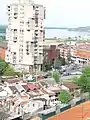 The most protruding feature in the neighborhood is the skyscraper officially called "Residential Tower Karaburma". Due to its unusual, spikey design it was originally nicknamed the "Hedgehog" or the "Mace of Kraljević Marko", but in time the nickname "Toblerone" stuck, after the Swiss chocolate of the same name.[6]