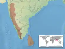 B. beddomei is found in India, in northern parts of the Western Ghats in Maharashtra state (Bhimashankar, Mulshi, Koyna, Vasota). It is also found in Gujarat and Goa in the hill ranges.[5]