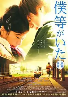 Bokura ga Ita (僕等がいた) is a 2012 Japanese film based on the manga of the same name, We Were There.[1] It is directed by the director Takahiro Miki and stars Toma Ikuta, Yuriko Yoshitaka.[1] The film was released in two parts, with the first released in Japanese cinemas in the spring of 2012.[2] The second part was released 4–5 weeks after the first part.[3]