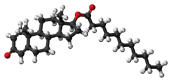 Boldenone undecylenate, or boldenone 17β-undec-10-enoate, is a synthetic androstane steroid and a derivative of testosterone.[2][3][6] It is the C17β undecylenate (undecenoate) ester of boldenone (δ1-testosterone, 1-dehydrotestosterone, or androsta-1,4-dien-17β-ol-3-one), which itself is the C1(2) dehydrogenated analogue of testosterone and a naturally occurring androgen found in the scent gland of Ilybius fenestratus (a species of aquatic beetle).[2][3][6] Boldenone is the non-17α-alkylated variant of metandienone (17α-methyl-δ1-testosterone).[2][3][6] An AAS related to boldenone undecylenate is quinbolone (δ1-testosterone 17β-cyclopentenyl enol ether).[2][3]