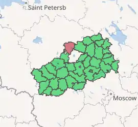 Bologovsky District (Russian: Болого́вский райо́н) is an administrative[1] and municipal[6] district (raion), one of the thirty-six in Tver Oblast, Russia. It is located in the north of the oblast and borders with Borovichsky District of Novgorod Oblast in the north, Udomelsky District in the east, Vyshnevolotsky District in the southeast, Firovsky District and the urban-type settlement of Ozyorny in the south, Valdaysky District of Novgorod Oblast in the west, and with Okulovsky District, also of Novgorod Oblast, to the northwest. The area of the district is 2,463.7 square kilometers (951.2 sq mi).[2] Its administrative center is the town of Bologoye.[1] Population: 38,557 (2010 Census);[3] 18,757 (2002 Census);[9] 32,790 (1989 Census).[10] The population of Bologoye accounts for 60.9% of the district's total population.[3]