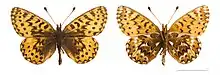 Boloria freija, the Freija fritillary, is a butterfly of the family Nymphalidae with a circumboreal distribution. It occurs in bogs and tundra. Its range includes Northern Europe to the north of 60° N, occasionally more southern locations, the Urals, Siberia, the Russian Far East, mountains of northern Mongolia and Hokkaido, as well as North America, extending in the Rocky Mountains to 35° N.[1][2]
