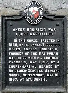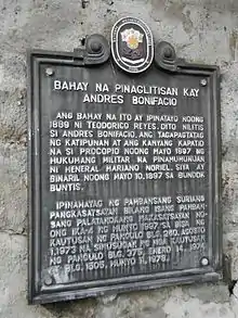 ![]() The house of Roderico Reyes in Maragondon, Cavite where Andres Bonifacio and his brother Procopio were tried by a court-martial in May 1897. | |