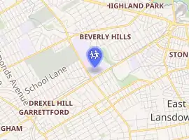 The campus is adjacent to, but not within, the Drexel Hill census-designated place.[4] It has a Drexel Hill postal address.[5]