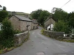 The Bont Dolgadfan bridge (Pont is Welsh for "bridge") is in the centre of the hamlet crossing the Afon Twymyn. It probably dates from the 18th century and was an important river crossing for the droveroad to Talerddig. The bridge is a Grade II listed structure.[2]