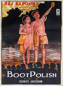 Boot Polish is a 1954 Hindi comedy drama directed by Prakash Arora and produced by Raj Kapoor. It won Best Film at the Filmfare Awards.[1] The film stars Ratan Kumar and Naaz in the lead roles.