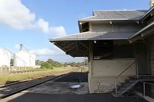 The railway arrived in Bordertown on 22 September 1881 when the Kingston SE to Narracoorte line was extended north.[1] It became a junction station in 1886 with the arrival of the Adelaide-Wolseley line with the station built in 1914.[2]