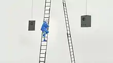 The music video for "Bored" was released to Eilish's YouTube channel on June 26, 2017, and directed by Miles & AJ.[2][8][18] Eilish came up with the concept for it.[9] The video sees her climbing and hanging off a ladder that seems to climb forever into endless white space, while she is dressed in a blue tracksuit with matching high-top Nikes[2][8] In an interview with Elle magazine, Eilish said the video was inspired by "being trapped in a relationship that was going nowhere. When you're in such a toxic place with someone and you're treated so badly for such a long time that eventually you're used to it."[9] Eilish also talked about the visual's endless ladder: "The thought of being on an endless ladder in a kind of timeless/antigravity space where no rules apply is just really sick to me, and goes with the concept of the song by getting nowhere in a relationship and getting bored."[2][9]