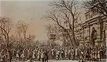 Boris Godunov (Russian: Борис Годунов, Borís Godunóv; variant title: Драматическая повесть, Комедия o настоящей беде Московскому государству, o царе Борисе и о Гришке Отрепьеве, A Dramatic Tale, The Comedy of the Distress of the Muscovite State, of Tsar Boris, and of Grishka Otrepyev) is a closet play by Alexander Pushkin. It was written in 1825, published in 1831, but not approved for performance by the censor until 1866 . Its subject is the Russian ruler Boris Godunov, who reigned as Tsar from 1598 to 1605. It consists of 25 scenes and is written predominantly in blank verse.