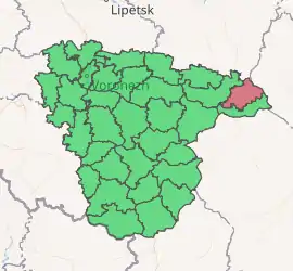![]() Location of Borisoglebsky District, Voronezh Oblast on the map of Voronezh Oblast | |