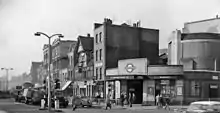 During the Second World War, parts of the disused tunnels between Borough and the south side of the River Thames were adapted into a large public air-raid shelter by Southwark Borough Council. The shelter had six entrances along Borough High Street; it opened on 24 June 1940 and closed on 7 May 1945.[6] A plaque at the station records this.