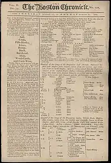 - MHS Collections Online: The Boston Chronicle, artifact number 364, Massachusetts Historical Society.