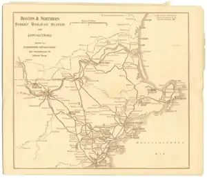 The Boston & Northern was renamed from the Lynn & Boston on July 23, 1901,[3] following the latter's purchase and merger of the following companies, each having previously acquired the below-listed smaller street railways. Additional street railway companies were subsequently acquired.