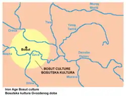 Bosut culture (Serbian: Bosutska kultura / Босутска култура or Bosutska grupa / Босутска група) is a name of an prehistoric Iron Age culture, which was named after Gradina on Bosut archaeological site in Serbia. It is sometimes grouped with related Basarabi culture into Bosut-Basarabi complex. There are different views about ethnic identity of the people of Bosut culture; according to one view, they were Triballi,[1] while according to another view, they were Daco-Getaes.[2] The culture flourished in the first half of the 1st millennium BC, until the arrival of the Scythian tribes.[3]