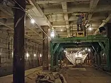 Like the nearby Naukova station, Botanichniy Sad was built with the open construction method, where earth is dug up, the station is constructed, and then covered up again. Initially, the station was supposed to be an above ground station, with a metro bridge crossing the Sarzhyn Yar, a popular recreation place for residents of Kharkiv. The top level of bridge was to hold the Lenin Prospect and the bottom — the station and railway tracks itself. However, the plan was scrapped because the plant environment surrounding the bridge could be destroyed.