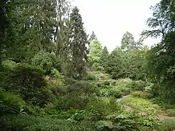 The garden was established in 1912 on one hectare. It was enlarged in 1914–1915 with the installation of the alpine garden containing about 500 different plant species, and in 1925-1927 enlarged again by a further 2.5 hectares to the west for its rhododendron collection. By 1952 it contained about 3000 species.
