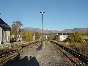 Bourg-Madame is a railway station in Bourg-Madame, Occitanie, France. The station is on the Ligne de Cerdagne known as Jaune Petit. The station is served by TER (local) operated by the SNCF. The line is a narrow gauge line at 1,000 mm (3 ft 3 3⁄8 in) and has a third rail pickup at 750 V DC (3rd Rail).