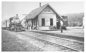 North Sandwich station was built by the Cape Cod Branch Railroad when the line was extended from Wareham to Sandwich in 1848.[2] It was located off what is now Herring Run Road on the south side of the Herring River, approximately where the north canal service road / bike path is now located.[3] Originally a flag stop, its ridership grew as Bournedale became a resort community. A new combination depot was built in 1895, by which time the stop was called Bournedale.[4]