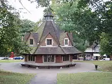 The Cadburys were particularly concerned with the health and fitness of their British workforce, incorporating park and recreation areas into the Bournville village plans and encouraging swimming, walking and indeed all forms of outdoor sports.[7] In the early 1920s, extensive open lands were purchased at Rowheath and laid to football and hockey pitches together with a grassed running track. Rowheath Pavilion was designed and built in accordance with the instructions of George Cadbury and opened in July 1924. At that time, it served as the clubhouse and changing rooms for the acres of sports playing fields, several bowling greens, a fishing lake and an outdoor swimming lido, a natural mineral spring forming the source for the lido's healthy waters. The Rowheath Pavilion itself, which still exists, was used for balls and dinners and the whole area was specifically for the benefit of the Cadbury workers and their families with no charges for the use of any of the sporting facilities by Cadbury employees or their families. The lido was eventually closed in the 1970s after complaints of noise disturbance were made by residents of the newly built Oak Farm estate, coupled with new and stringent health and safety regulations relating to outdoor public swimming facilities. Cadbury's also built the Bournville indoor swimming baths on Bournville Lane (separate buildings for 'girls' and men), the Valley pool boating lake and the picturesque cricket pitch adjacent to the factory site, that was made famous as the picture on boxes of Milk Tray chocolates throughout the 1950s and early 1960s.