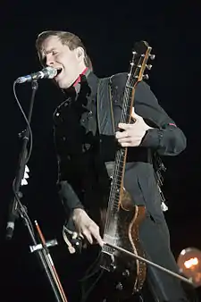 • Jónsi (Jón Þór Birgisson), the vocalist and guitarist for the Icelandic post-rock band Sigur Rós, uses a bowed guitar extensively.