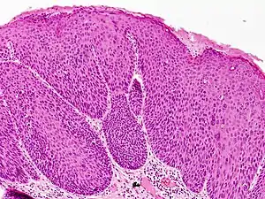 Bowenoid papulosis is a cutaneous condition characterized by the presence of pigmented verrucous papules on the body of the penis.[1]: 730 [2]: 408 They are associated with human papillomavirus, the causative agent of genital warts.[3] The lesions have a typical dysplastic histology and are generally considered benign, although a small percentage will develop malignant characteristics.