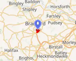 Bowling Park is a public urban park near Bolling Hall in Bradford, West Yorkshire, England about 1+1⁄2 miles (2.4 km) south south east from the city centre.[1] The park is irregularly shaped with an area of 50 acres (20 ha)[1][2] and is bounded by Bowling Hall Road, Burras Road, Bowling Memorial Cemetery, Parkside Road, Avenue Road, Bowling Park Allotments and Bowling Park Drive (formerly New Hey Road).[3]