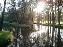 Boats are still available for rent on the lagoon, the fountain has been reinstalled, and the lagoon is used extensively for skating in the winter. In summer, the picnic sites and open spaces for ball games are popular, as is a mini-golf.[1] The modest redevelopment proposed in a 2008 plan began in June 2012.[7] However, the redevelopment was dealt a major setback with the June 2013 flood. Parts of the park were covered by as much as 1.5 meters of silt, as well as other debris. As a result, the redevelopment work that had been done so far was largely erased, and the work plan was modified in order to keep the reduce the impact of future floods. The park was closed for summer 2014.[8] The west half reopened in November 2014, and the east half of the park is expected to reopen in summer 2016.[1]