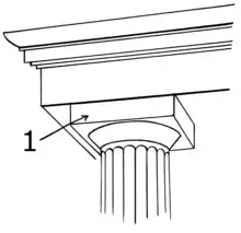 Bowtell - upwardly expanding curved surface found beneath the abacus - rectangle found on top of column, labelled number 1.