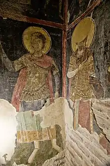 The first layer of frescoes, which originally covered the entire eastern church, dates from the 11th–12th century. Fragments of those frescoes have been preserved in the lower parts of the apse and the north wall, and in the upper part of the west wall and the south vault.