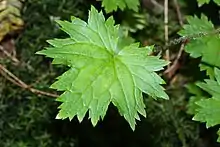 Boykinia occidentalis is a species of flowering plant in the saxifrage family known by the common name coastal brookfoam. It is native to the west coast of North America from British Columbia to California, where it grows in shady areas near riverbanks and streams. It is a rhizomatous perennial herb producing large, rounded leaves with blades up to 45 centimeters long and 12 wide, borne on petioles up to 30 centimeters in length. Each leaf has several rounded lobes with dull teeth along the edges. The inflorescence reaches 30 to 60 centimeters tall on a thin stem. It bears an open array of many small white flowers, each with five tiny pointed sepals and five larger oval petals.