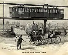 The concept was invented by Eben Moody Boynton, who hoped that this would eventually replace the conventional rail road, because it was cheaper to build and could be used for a double track on the space available for a conventional single track right of way.[3][4]