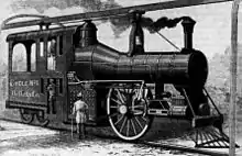 A heavier locomotive was especially designed for this method of traction, and built for use on a street railway. It weighed 16 tons and had a pair of 5 foot drivers. The crank was only seven inches in length, and the engine was designed to readily make 600 revolutions a minute, and maintain a speed of 100 miles an hour with a full train of passenger cars.[5]