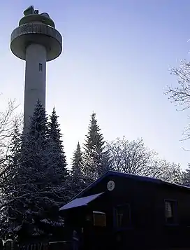 On the summit of the Bröhn stands the Anna Tower (Annaturm), a 28-metre-high (92 ft) microwave tower made of reinforced concrete, the 5th successor to the original survey tower that was built on this spot at the instigation of Professor Carl Friedrich Gauss in 1834. From this observation tower there is a panoramic view in good weather over the Calenberg Land as far as Hildesheim and Hanover, to Lake Steinhude and also over the northern Weser Uplands.