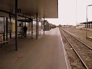 The station is located on the Vendsyssel Line from Aalborg to Frederikshavn. It opened in 1871 and was moved to its current location in 1966.[4] The train services are operated by the railway company Nordjyske Jernbaner, which runs frequent regional train services to Aalborg and Frederikshavn.[3]