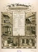 In 1842, Anders Antonsen Brøndum (1790–1861) purchased the property.[7] Anders Brøndum was the younger half-brother of Christen Brøndum. He had owned the distillery Paradis on Store Kongensgade from 1819 and was also the owner of the inns and associated distilleries Roskilde Kro (from 1838),[8] Store Kro in Kongens Lyngby and Bagsværd Kro in Bagsværd. He initially operated the property in Store Kongensgade as a brewery specializing in bavarian beer.[9] In 1844, Brøndum converted the brewery into a distillery and yeast factory.